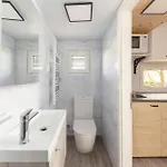 Tot de badkamerfaciliteiten van Tiny House Ljubljana Villa behoren ook een apart toilet en een douche. Er zijn een haardroger en handdoeken voor het comfort van de gasten.